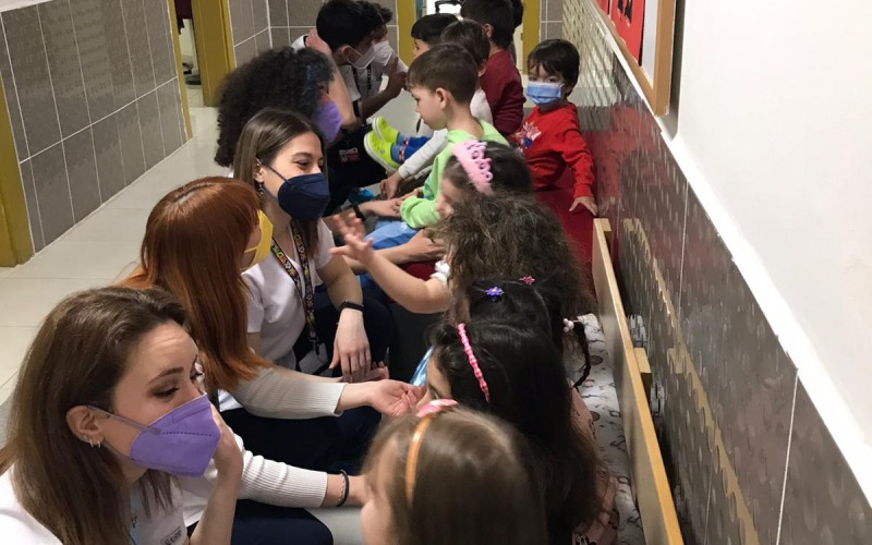 Diş Hekimliği Fakültesi Pedodonti Anabilim Dalı öğretim üyeleri Dr. Öğr. Üyesi Burak Çarıkçıoğlu ve Dr. Öğr. Üyesi Berkant Sezer gözetiminde 4. sınıf diş hekimi adayları kreşimizde 5-6 yaş grubu çocuklarımızın ağız-diş sağlığı muayenelerini yaptılar. İl 5-6 yaş grubu çocuklarımıza yapılan ağız içi muayenelerinde mevcut çürükler ve ağız hijyen durumları değerlendirilerek öğretmenlerimize ve velilerimize bilgilendirmelerde bulunuldu. Hocalarımıza ve diş hekimi adaylarımıza ilgileri için çok teşekkür ederiz.