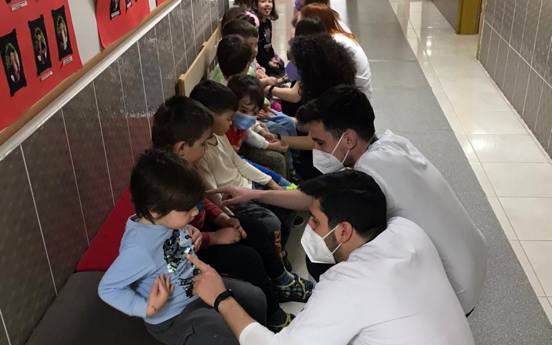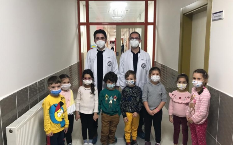 Diş Hekimliği Fakültesi Pedodonti Anabilim Dalı öğretim üyeleri Dr. Öğr. Üyesi Burak Çarıkçıoğlu ve Dr. Öğr. Üyesi Berkant Sezer gözetiminde 4. sınıf diş hekimi adayları kreşimizde 5-6 yaş grubu çocuklarımızın ağız-diş sağlığı muayenelerini yaptılar.
